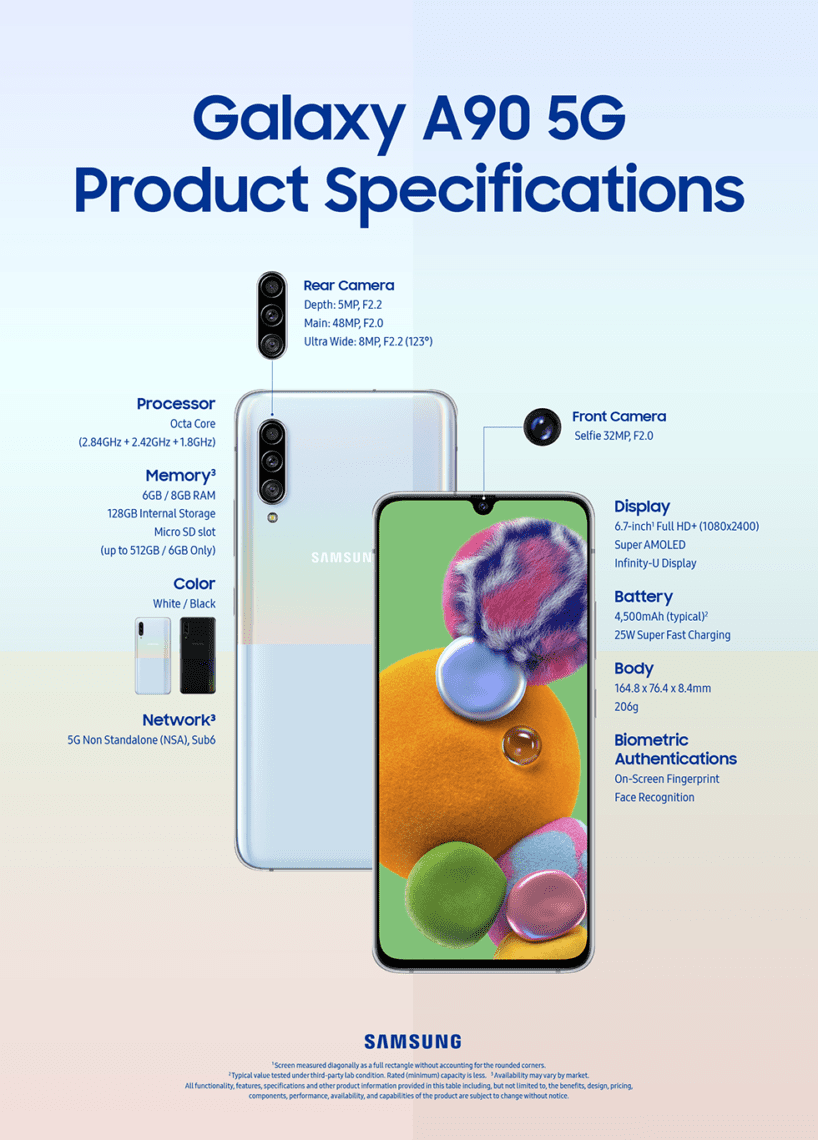 Smartphone tersebut bakal dijual pertama kali di Korea Selatan, dan mungkin Samsung akan memperluas ke negara lainnya. Sayang, brand ini belum mengumumkan harga dari Galaxy A90 5G. (FHP)
