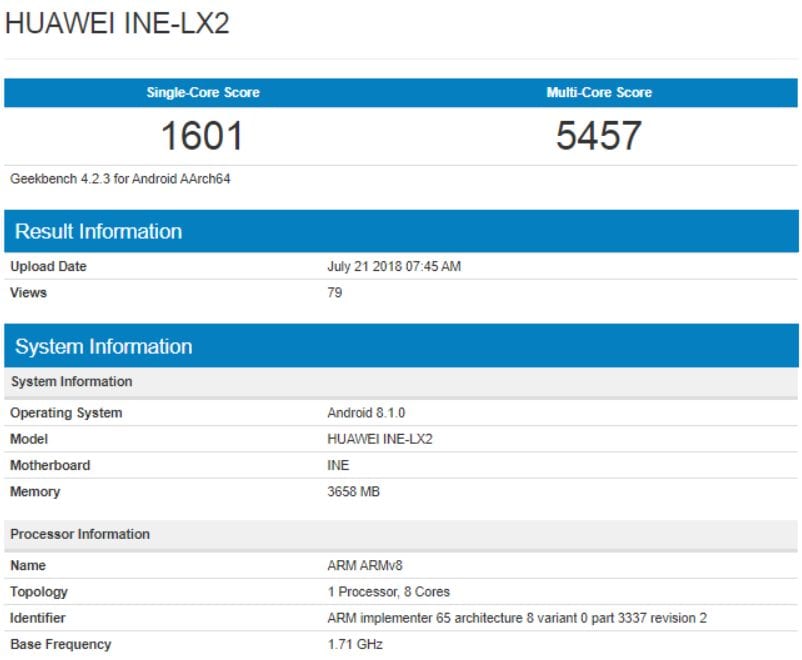 Seri terbaru yang diberi nama Nova 3 kini muncul di Geekbench dengan nomor model – Huawei INE-X2. Daftar di Gekbench dapat memberikan sekilas patokan kinerja chipset Kirin 710.