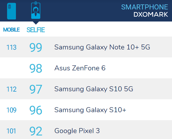 Dengan konfigurasi itu, Samsung Galaxy Note 10+ 5G memperoleh skor 113 poin untuk kamera belakang, dan berhasil menggusur Huawei P30 Pro yang sebelumnya menjadi pemimpin dengan skor 112 poin.