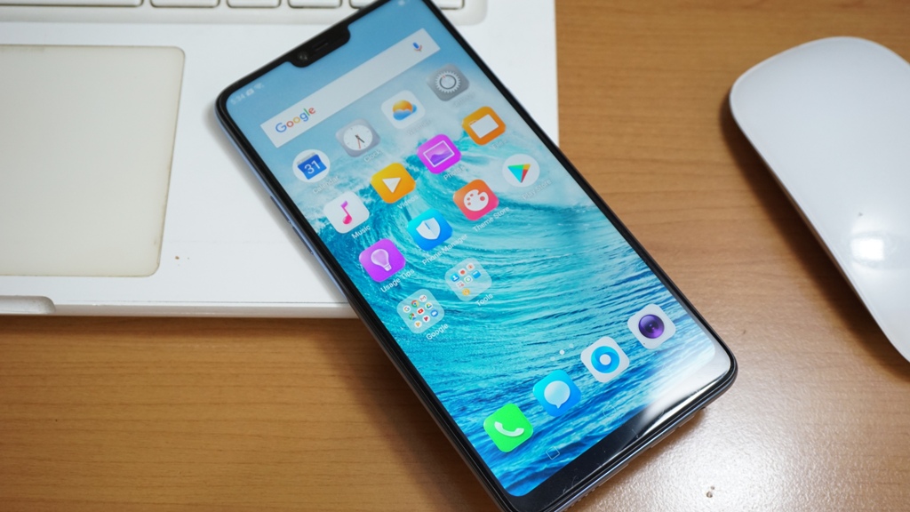 Dengan layar berponi Oppo F7 Dibekali layar dengan ukuran 6.23 inci FHD+ Super Full Screen dengan rasio 19:9. Menariknya layar besar ini dapat memberikan pengalaman terbaik bagi pengguna saat bermain games dan membaca konten Online, akan tetapi dengan ukuran smartphone yang sesuai dengan gengaman tangan pengguna.