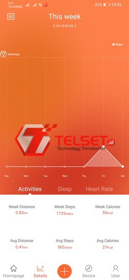 Berbicara soal fitur, selain fitur standar wearable seperti pemantau detak jantung serta kualitas tidur, Advan Start Go S1 sebenarnya punya fitur yang tergolong lengkap. Seperti hadirnya fitur “Sport Mode” yang menyajikan 8 jenis olahraga, seperti Run, Walk, Bike, Hike, Climbing, Treadmill, Spinning, sampai Yoga.