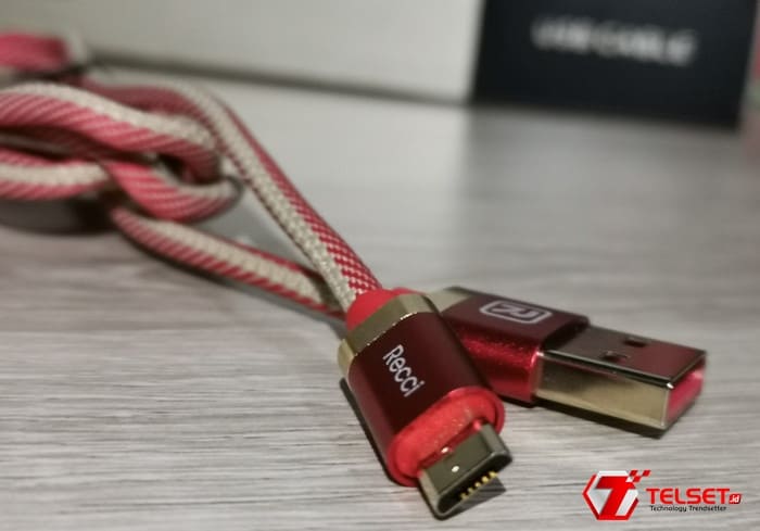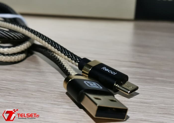 Memang salah satu ciri khas produk buatan Recci adalah desainnya yang kelihatan eye catching. Kabel ini dibalut dengan lapisan anyaman bahan denim berkualitas, sehingga membuat tampilannya keren.