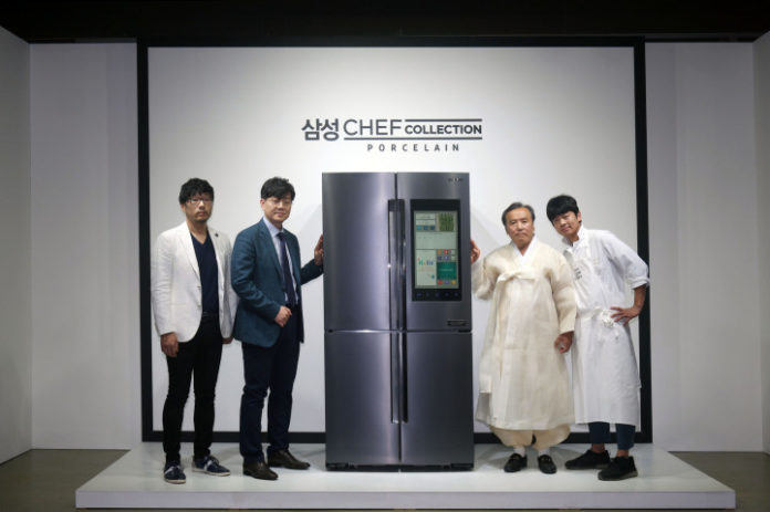 Kulkas pintar baru ini merupakan bagian dari “Samsung’s Chef Collection”. Untuk bisa membuat kulkas pintar ini tim Samsung mengunjungi tujuh negara yang berbeda selama dua tahun dan melakukan ratusan tes untuk memilih bahan terbaik. Dan hasilnya Kulkas pintar ini memiliki desain interior yang unik dengan bahan porselen putih.