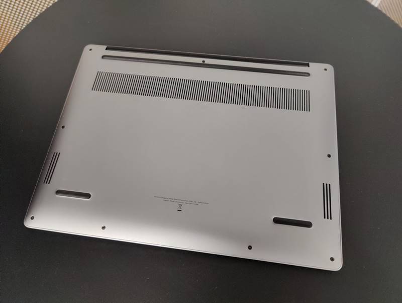 Di bagian bodi bawahnya, terlihat juga kisi-kisi speaker stereo. Laptop ini pun memiliki port USB-C yang berguna juga untuk mengisi daya baterainya.