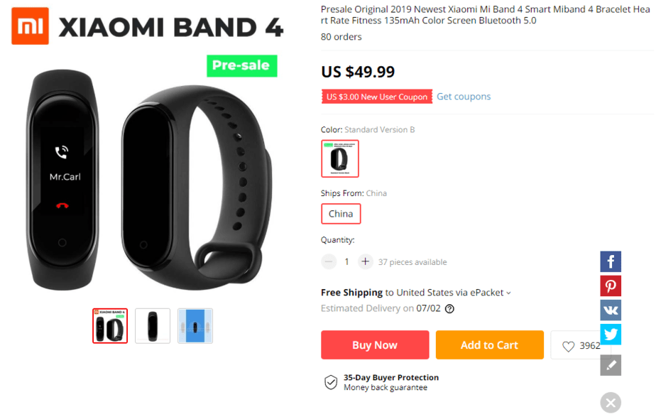 Dikutip dari Gizmochina, Sabtu (08/06/2019), pre-order dilakukan oleh salah satu penjual bernama Mr. Carl di situs AliExpress. DI sana, harga Mi Band 4 mencapai USD 49,99 atau setara Rp 710 ribuan.