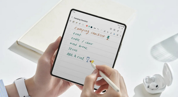 Sejak di seri Galaxy Z Fold3, kehadiran S Pen sudah banyak membantu meningkatkan produktifitas. Seperti untuk mencatat langsung di layar, mengubah tulisan tangan menjadi teks, menyunting dokumen, untuk menggunakan Air Command, dan membantu menerjemahkan dengan mudah.