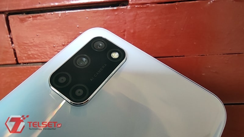 Bukan cuma warna yang terlihat ciamik, bentuk frame kamera dari Oppo A92 pun sangat jauh berbeda dibandingkan seri Oppo lainnya. Smartphone ini memiliki frame kamera berbentuk persegi panjang yang menjadi tempat bagi empat kamera, LED Flash, dan satu slogan “AI Camera”.