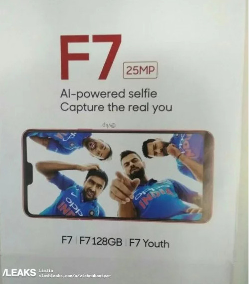 Desainnya sendiri  Oppo F7 dan F7 Youth akan memiliki nuansa iPhone X yang akan menampung kamera depan dan lubang suara. Tapi, tidak seperti iPhone X , akan ada bezel yang lebih tebal di bagian bawah bagian depan, seperti yang bisa Anda lihat di poster.