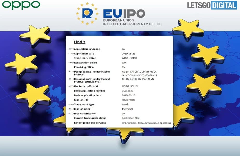 Hal ini diketahui setelah Oppo mengajukan merek dagang ke World Intellectual Property Office (WIPO) untuk nama Find Y. Merek ini dikategorikan sebagai Class 9 yang mencakup smartphone.