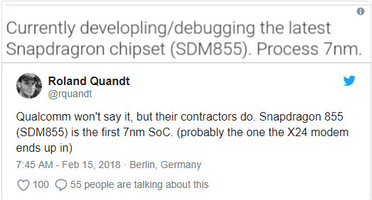 Informasi yang menyebutkan bahwa Qualcomm sedang menggarap Snapdragon 855. Informasi tersebut dilontarkan langsung oleh tipster ternama, yakni Roland Quandt.