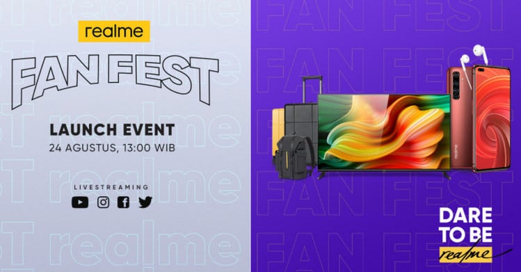 realme Fan Fest 2020 digelar sebagai tema peluncuran produk terbaru realme yang akan diadakan pada 24 Agustus pukul 13:00 WIB secara online. Para realme Fans dari seluruh Indonesia dapat bergabung melalui YouTube, Instagram, Facebook dan Twitter.