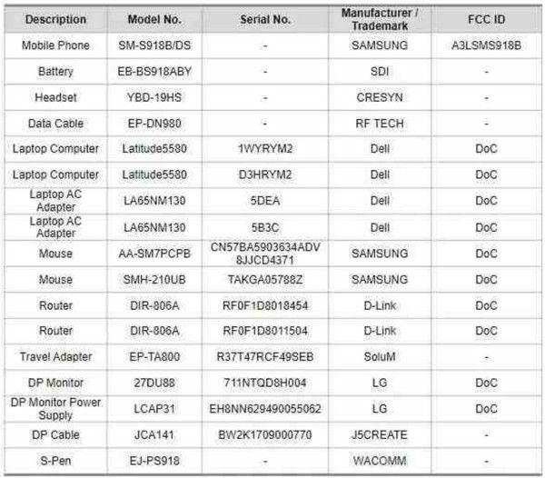 Galaxy S23 Ultra yang muncul di database FCC dengan detail utama mengenai perangkat tersebut. Perangkat tersebut memiliki nomor model SM-S918B/DS.
