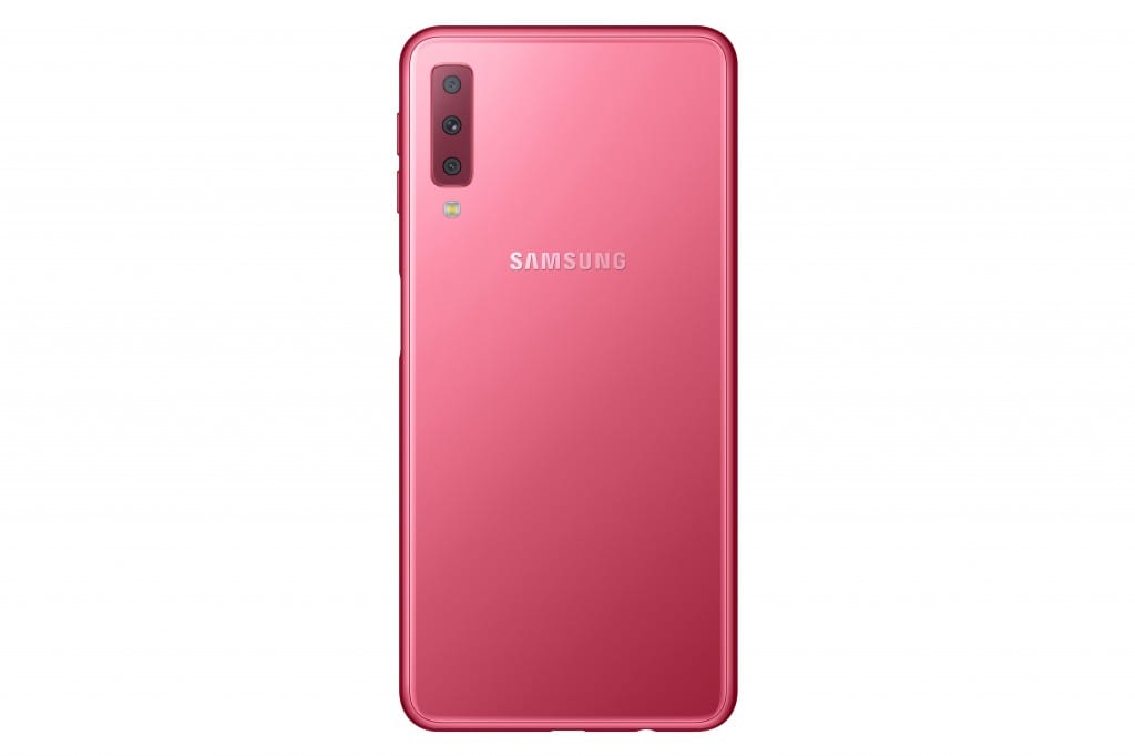 Samsung Galaxy A7 (2018) mengusung tiga kamera di bagian belakang yang diposisikan secara vertikal di pojok kiri atas body smartphone. Ketiganya masing-masing beresolusi 24MP sebagai lensa utama dengan aperture f/1.7, 8MP lensa ultra-wide dengan aperture f/2.4 dan 5MP lensa depth.
