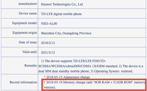 Bukan berbeda dalam hal desain, melainkan berbeda dalam sisi memori internalnya. Bagaimana tidak, seperti dilansir dari PhoneRadar, smartphone yang pertama kali muncul di situs TENAA dengan nomor model NEO-AL00 ini dibekali ROM 512GB, ketika smartphone lain saat ini maksimal hanya memiliki 256GB saja.