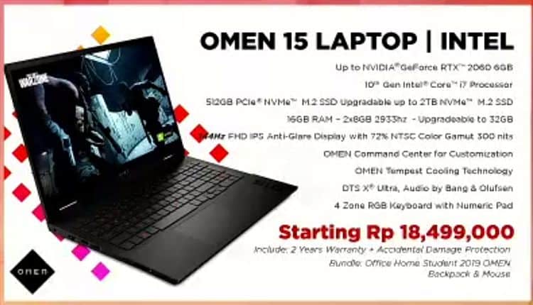 OMEN 15 Laptop (2020) akan tersedia di September 2020. Untuk versi 10th Gen Intel Core i7 H-series tersedia dengan harga mulai dari Rp18.499.000 sedangkan versi AMD Ryzen 7 H-series dengan harga mulai dari Rp20.999.000. [IR/HBS]