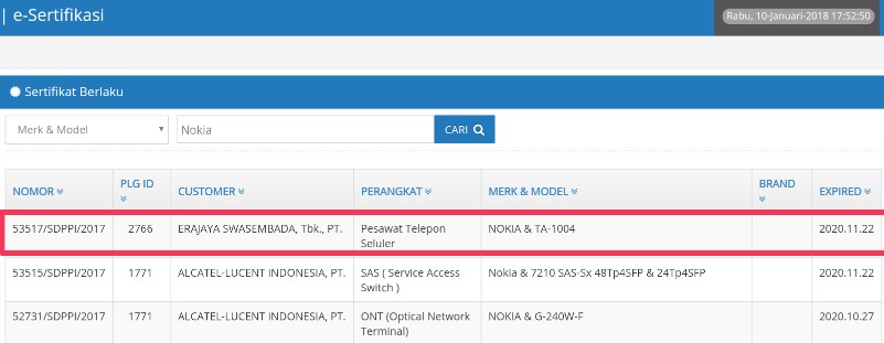 Untungnya, berdasarkan penelusuran tim Telset.id di situs e-Sertifikasi Dirjen Postel, ternyata Nokia 8 telah resmi mendapatkan sertifikasi berlaku. Sertifikasi dari smartphone dengan nomor model Nokia TA-1004 itu diajukan oleh PT Erajaya Swasembada dan didapatkan pada tahun 2017 lalu.