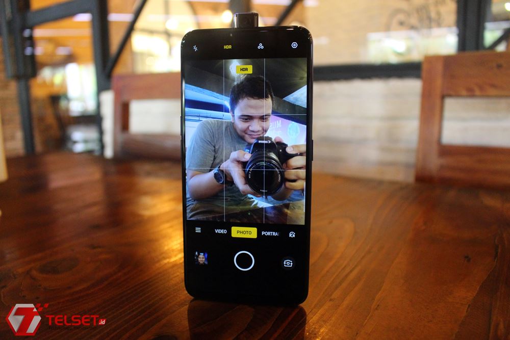 Ya, Oppo F11 Pro memiliki kamera pop-up yang akan muncul apabila kamera tersebut digunakan. Prosesnya sama dengan Oppo Find X, ketika pengguna mengaktifkan kamera depan atau menggunakan face unlock, maka kamera mekanik itu akan muncul dengan cukup cepat dari dalam body smartphone.