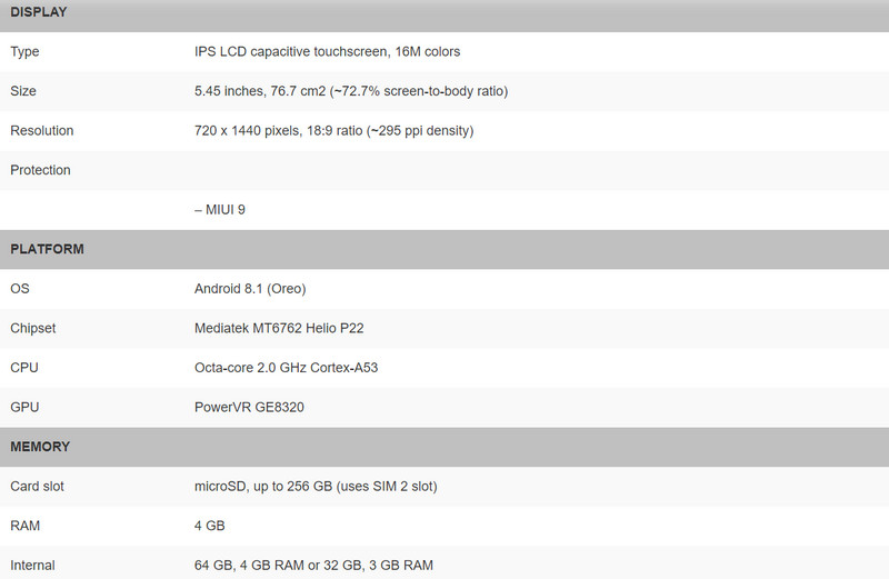 Xiaomi Redmi 6 juga didukung dengan dua model RAM dan ROM, masing-masing 3GB/32GB serta 4GB/64GB dan baterai berkapasitas 3,000 mAh. Dengan spesifikasi itu, sistem operasi MIUI 9.6 berbasis Android Oreo pada smartphone ini dimungkinkan akan berjalan dengan lancar.