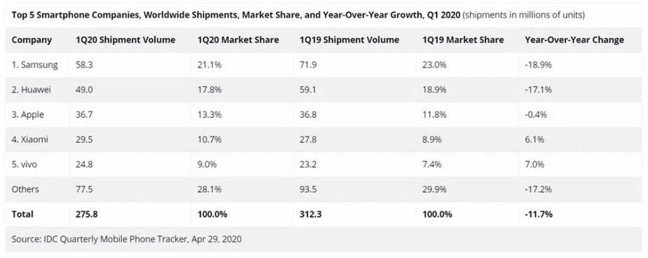 Laporan Worldwide Quarterly Mobile Phone Tracker Q1-2020 oleh IDC menunjukkan, vivo juga mengalami pertumbuhan market share secara global dengan year-on- year growth sebesar 7%.