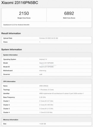 Untuk Xiaomi 14 telah melewati pengujian Geekbench 5, sedangkan Xiaomi 14 Pro menjalankan pengujian Geekbench 6 yang membuat memiliki tolak ukur yang berbeda, sehingga hasilnya tidak bisa dibandingkan satu sama lain.