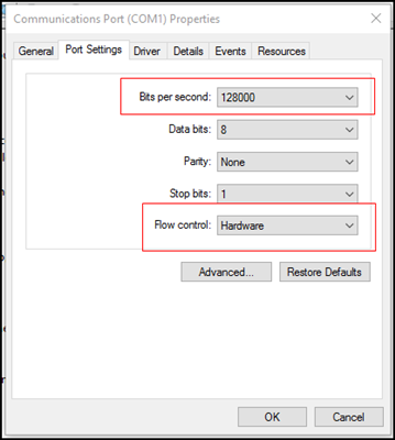 - Selanjutnya, di masuk ke bagian Port Settings, ubah bagian Bits per second ke nilai maksimum. Jangan lupa, ubah Flow Control ke Hadrware dan kemudian tekan Ok.