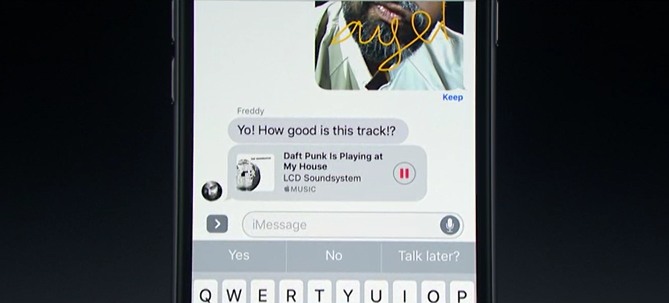 iOS 10 akan segera mengizinkan iMessage “terpasang” beberapa aplikasi pihak ketiga untuk membuat aplikasi ini semakin bagus seperti aplikasi untuk stiker, Apple Music, aplikasi transfer uang, dll.