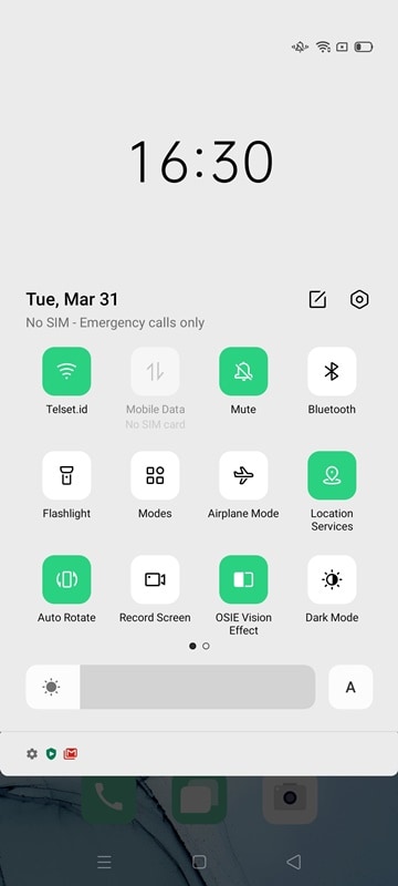 4. Selain dengan langkah-langkah di atas, fitur OSIE di Oppo Reno3 juga bisa diaktifkan dengan mendatangi Control Center atau Pusat Kendali. Caranya dengan menggeser ke bawah dari bagian paling atas layar apa pun dan cari OSIE Vison Effect.