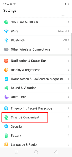 - Pertama yang harus Anda lakukan adalah masuk ke Settings dan pilih pengaturan Smart & Convenient.