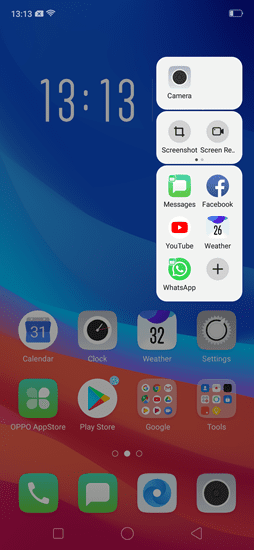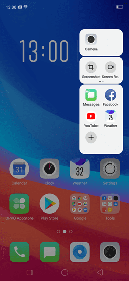 - Kembali ke halaman utama smartphone, akan muncul tombol popup transparan pada sisi kanan atas layar Oppo F9.