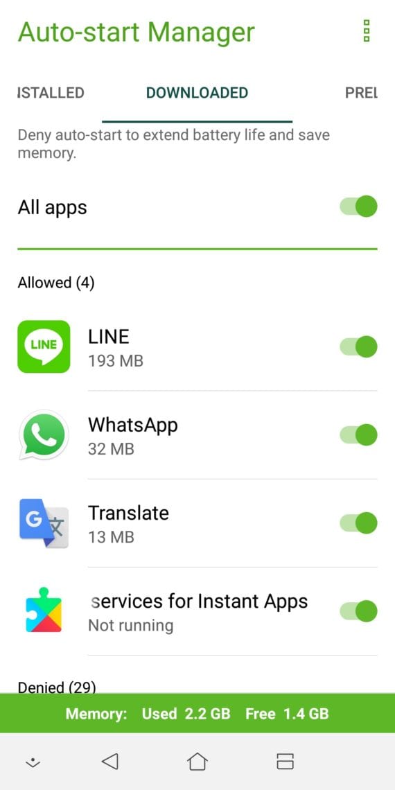- Matikan aplikasi yang dirasa tidak penting dan malah memberatkan ketika smartphone dinyalakan dengan mengubah toggle-nya.