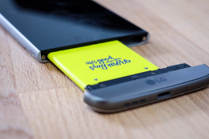 Telset.id – Hanya beberapa detik saja, kita bisa melepas dan mengganti baterai LG G5 berkat desain modular. Apa sebenarnya desain modular? Secara singkat jika kita lihat di LG G5, desain modular memudahkan kita untuk dapat meningkatkan atau menambahkan fitur pada ponsel dengan melepas bagian bawah LG G5 kita. Sebagai contoh, kita dapat mengganti baterai dengan yang baru atau menggantinya dengan aksesoris LG yang didesain untuk meningkatkan performa atau fitur dari LG G5 seperti kamera atau speaker.