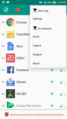 - Setelah itu, tekan tombol yang berada di kanan atas layar (berbentuk tiga titik) dan pilih Settings > Advanced Options, kemudian aktifkan Filter Traffic.