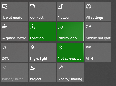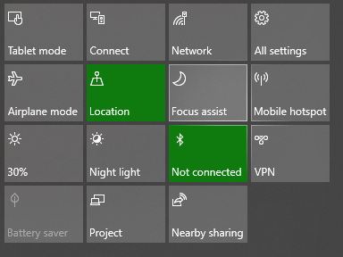 - Selanjutnya, tekan tombol notifikasi di sisi kanan taskbar dan pilih tombol Focus Assist, tepat di sebelah kanan Location.