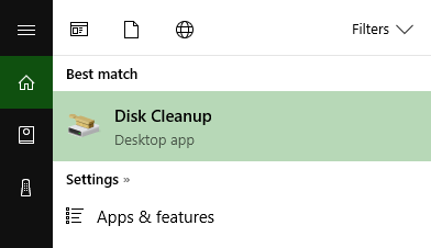 - Pertama yang harus Anda lakukan, cari di search bar dengan keyword “Disk Cleanup“, kemudian pilih aplikasi yang muncul di hasil pencarian.