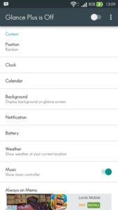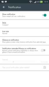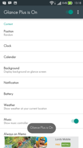 - Selanjutnya adalah tekan opsi Glance on notification, dan tambahkan aplikasi yang nantinya akan dimunculkan notifikasinya pada layar.