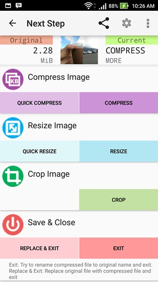 Permasalahannya sekarang adalah, ketika kita mengambil foto, foto yang dihasilkan mampu memangkas kapasitas memori internal atau eksternal di smartphone kita. Salah satu trik untuk mengurangi jumlah memori yang terpakai adalah dengan compress gambar menggunakan aplikasi yang ada. Namun kekurangannya adalah kualitas foto akan berkurang.