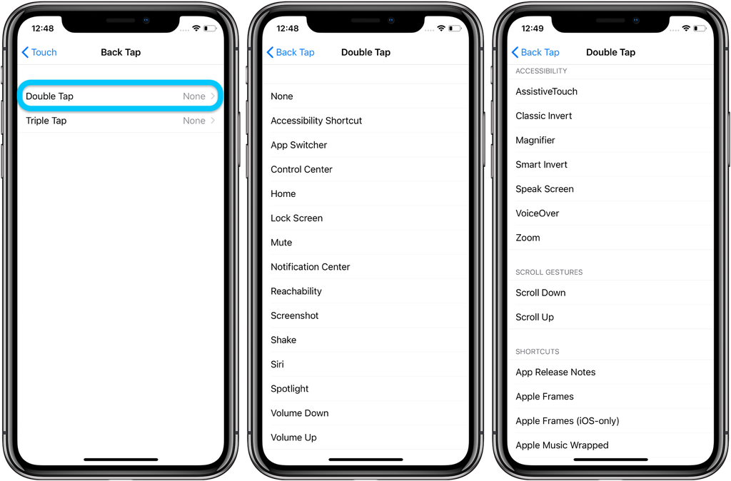 Misalnya, saat melakukan back tap Anda bisa membuka akses Control Center, mengambil screenshot, atau memungkinkan akses ke fitur seperti Assistive Touch, VoiceOver, Zoom dan lain sebagainya.