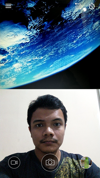 - Jika sudah, maka UI kamera akan menampilkan gambar dari kamera depan sekaligus kamera belakang.