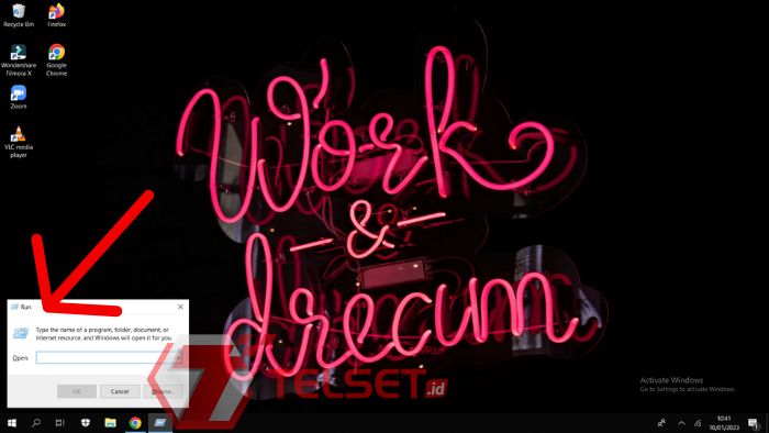 - Buka Windows Run dengan mengklik Win + R di keyboard anda