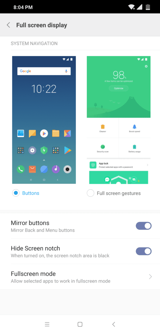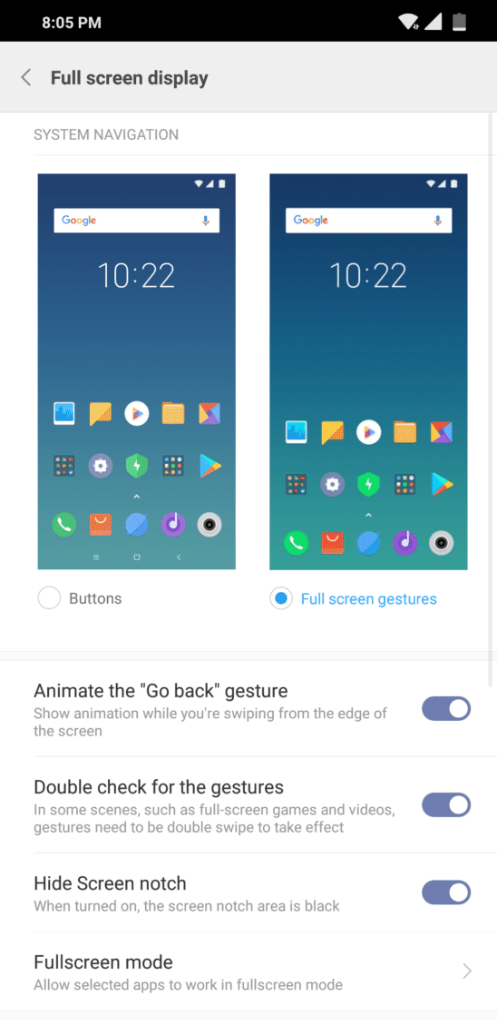 - Untuk memaksimalkan rasio layar pada body smartphone, kami sarankan juga untuk mengaktifkan opsi Full screen gestures di pengaturan yang sama.