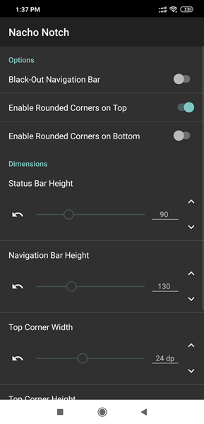 - Solusinya, buka pengaturan Nacho Notch, dan aktifkan Enable Rounded Corners on Top. Maka, bar hitam yang menyamarkan notch akan melengkung di sisi kiri dan kanannya, mengikuti kontur layar dari Pocophone F1.