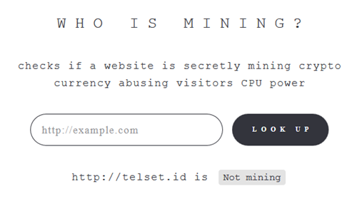 Cara pertama yang kami berikan kepada Anda adalah dengan menggunakan situs bernama Who is Mining yang mungkinkan penggunanya untuk memeriksa apakah terdapat perintah menambang Bitcoin atau tidak pada situs yang ingin mereka akses. Berikut caranya: