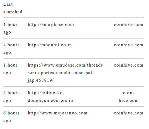 - Pada situs pun terlihat daftar situs-situs yang baru saja dikenali sebagai situs penambangan Bitcoin beserta protokol yang digunakannya. Daftar itu sendiri terdapat di bagian bawah situs.