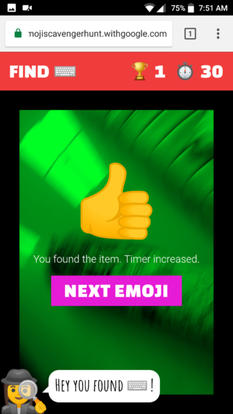 - Selanjutnya, akan muncul emoji dalam tampilan game. Tugas Anda adalah menemukan objek di sekitar Anda yang serupa dengan emoji tersebut dalam waktu sekitar 20 detik.
