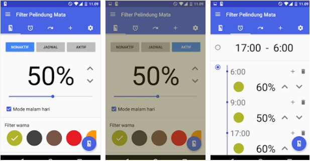 Jadi, Anda sudah melihat ponsel Anda saat ini dan sepertinya tidak memiliki mode malam? Ini bisa terjadi. Saat ini ada sejumlah aplikasi yang tersedia di Google Play yang memungkinkan Anda mencapai hasil yang sama. Salah satu yang paling populer di sekitar saat ini adalah Bluelight Filter. Ini memiliki fungsi yang sama seperti yang Anda temukan di fitur Android bawaan, dengan lebih banyak opsi baru seperti memilih warna filter dari tujuh nuansa yang tersedia, pintasan di layar awal, widget notifikasi di layar dan jadwal waktu aktivasi.