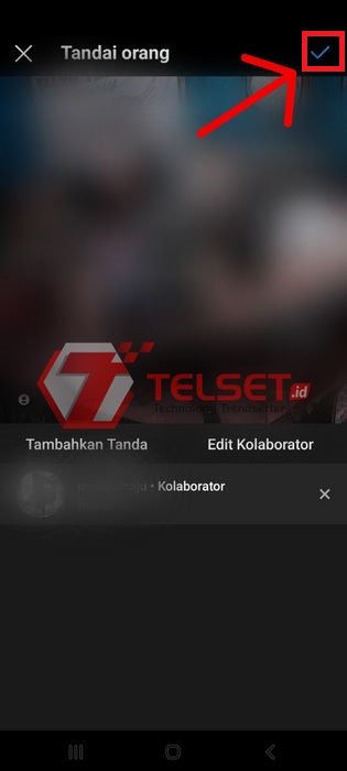 - Setelah memilih akun yang ingin dijadikan kolaborator kalian akan kembali ke menu tandai orang dan klik tanda ceklis di kanan atas.