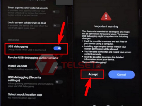 Lalu aktifkan USB debugging. Ini akan memastikan Anda akan terhubung ke PC dengan benar.