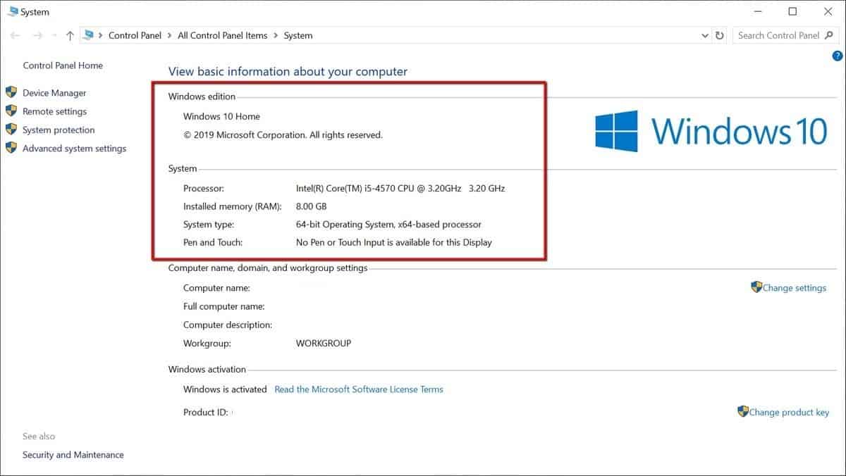 - Lalu, bagian yang disorot seperti gambar di atas merupakan semua informasi dasar tentang PC Anda