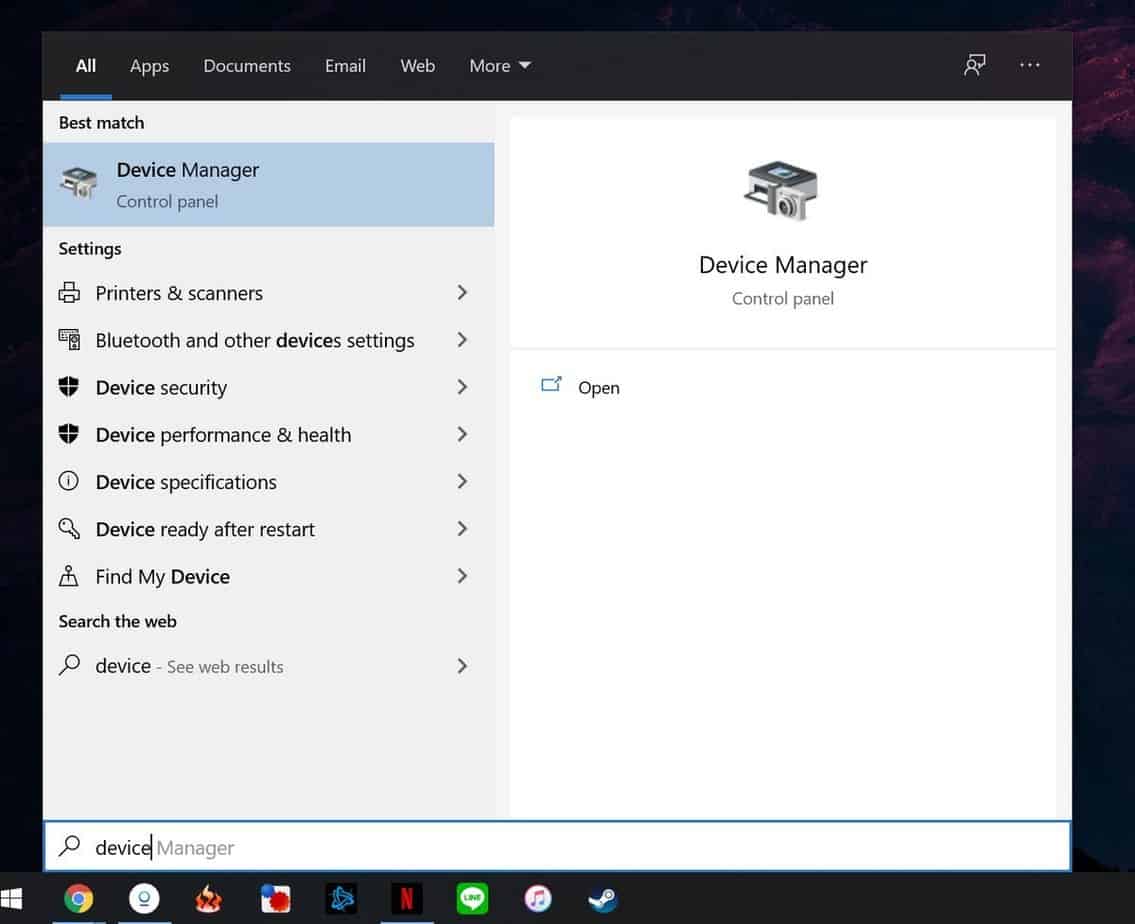 - Ketik Device Manager di bagian Search, tepat sebelah tombol Start Menu.