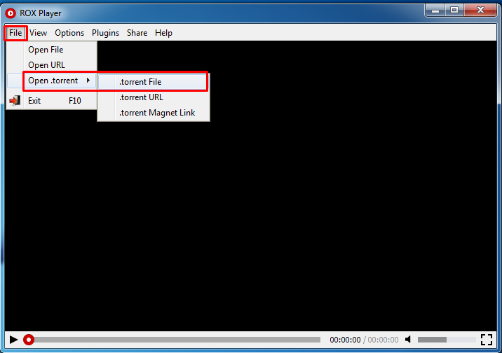 - Selanjutnya, buka ROX Player dan klik tombol File dan pilih opsi Open .torrent kemudian pilih .torrent File.